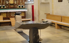 Künstlerische Gestaltung Altar, Ambo, Priestersitz, Weihwasserbecken, Osterkerzenleuchter und Vortragekreuz
