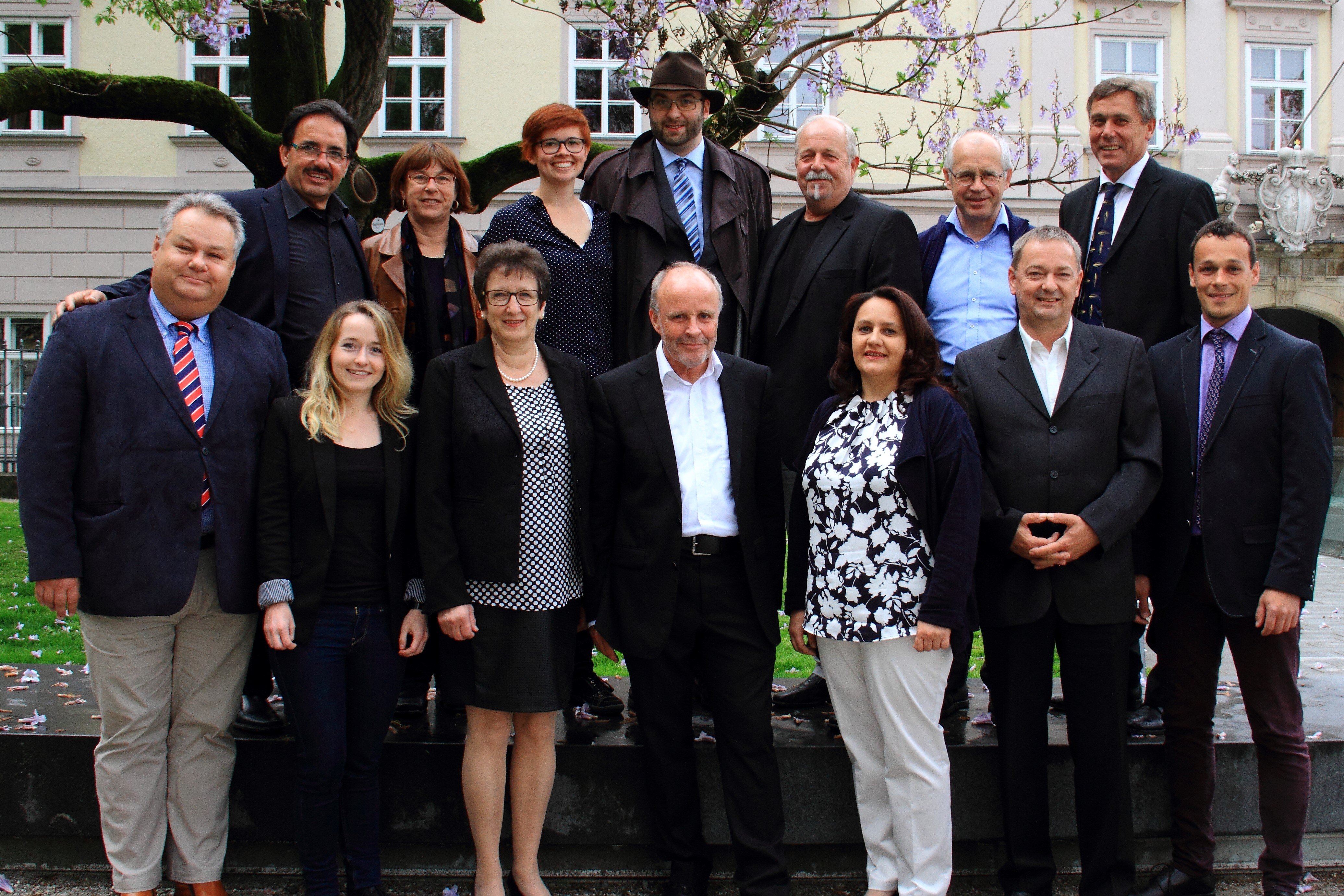 2017-05 Gruppenfoto Papa Gruber Kreis und Plattform Johann Gruber vor der Preisverleihung im Landhaus
