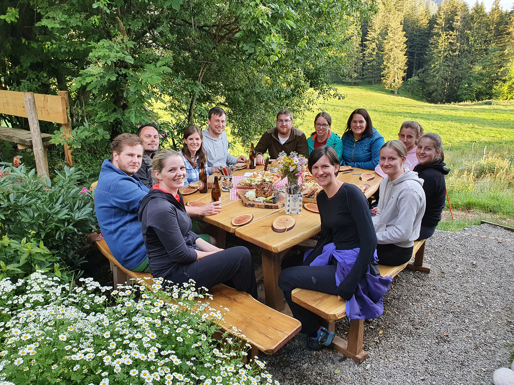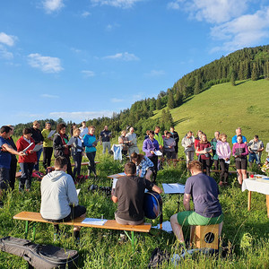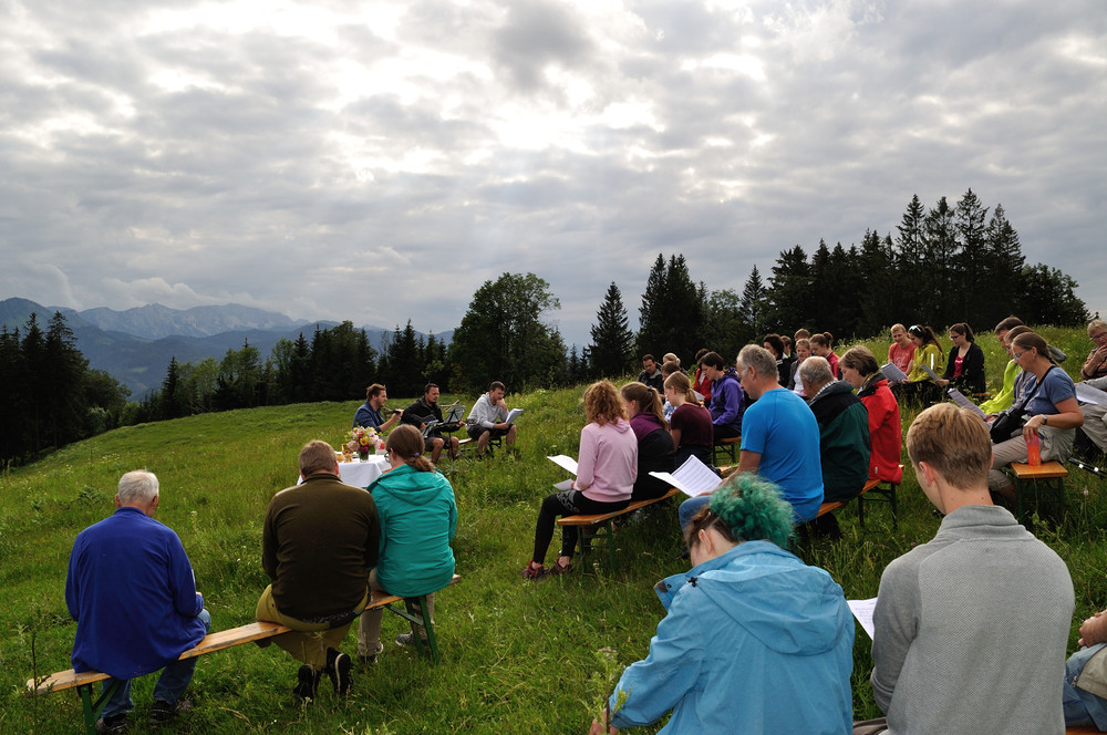 Für das Dekteam endete der Abend nach der Bergmesse allerdings noch nicht. Nach einer sehr guten, mit liebe gemachten Jause, verbrachte ein Teil des Teams den Abend noch gemütlich beim Lagerfeuer wo bis in die frühen Morgenstunde fröhlich aus dem Liederberg gesungen wurde. Die Chance so tolle Musiker dabei zu haben, wurde also besten genützt :-). Auch das gemeinsame Übernachten auf der Alm war ein Highlight, ohne Strom, Fließwasser usw. - aber genau so solls auch sein, solche Erlebnisse verbinden und stärken!