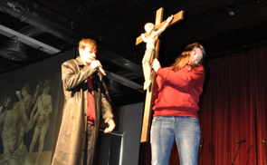 Rund 40 Jugendliche aus den Dekanten Steyr und Weyer brachten die Leidensgeschichte Jesu als künstlerische Performance auf die Bühne im Museum Arbeitswelt in Steyr.