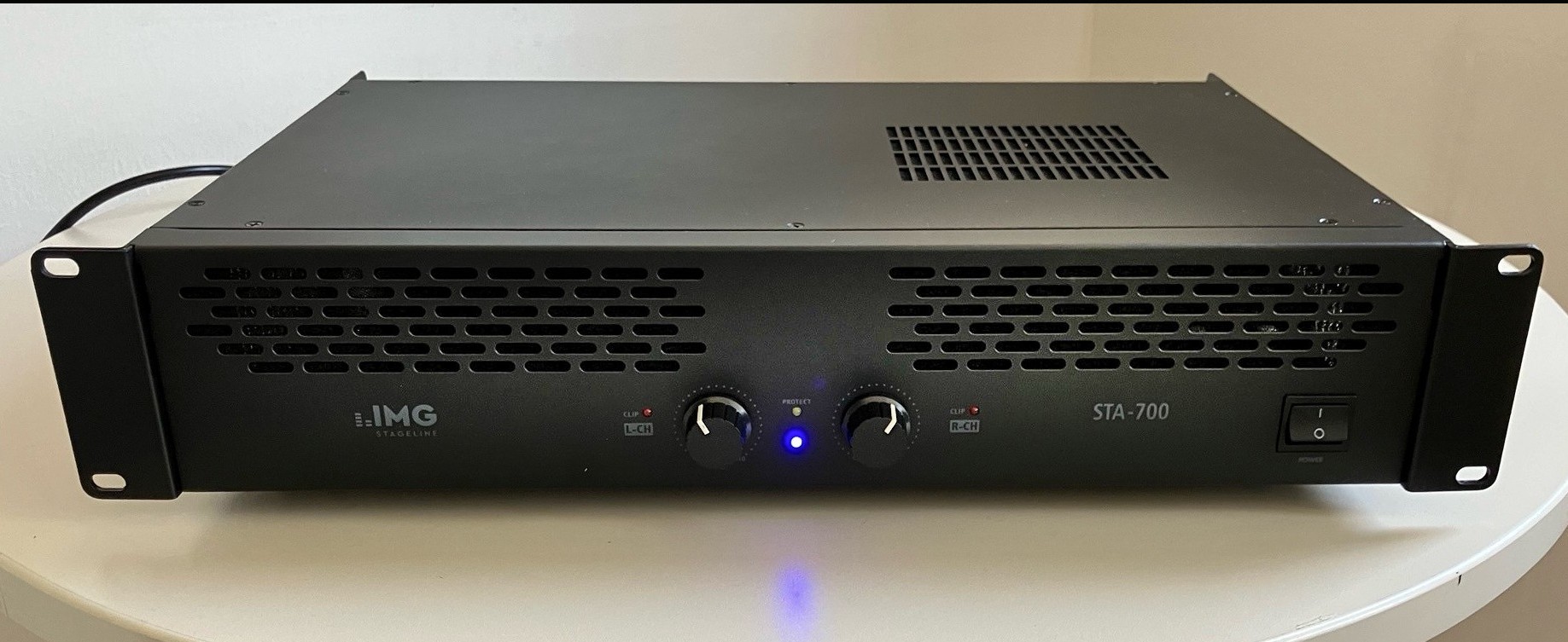 Dieser Verstärker hat eine Nennausgangsleistung von 2 x 275 Watt bei 4 Ohm und 2 x 200 Watt bei 8 Ohm. Er ist einfach zu bedienen. Zur Auswahl hat er Klinken oder Chinch-Eingänge, bzw. beim Ausgang Speaker-Buchsen, Klinken (groß) und schraubbare Kabelklemmen +/-.